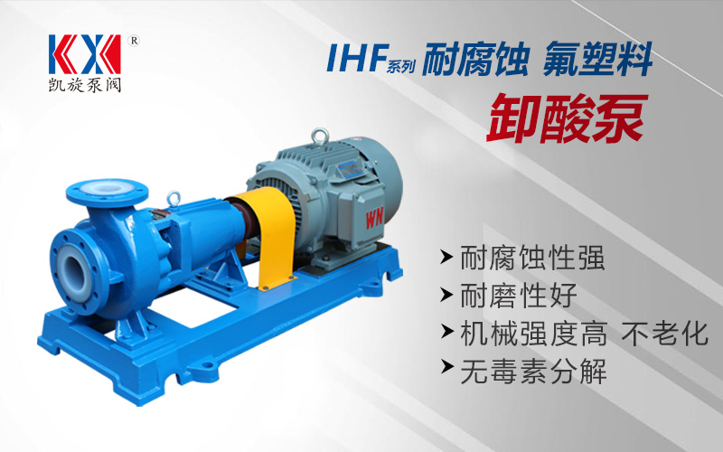 卸酸泵又叫耐酸泵是輸送硫酸、鹽酸、硝酸、氫氟酸等酸性介質(zhì)泵的總稱。酸具有很強的腐蝕性,所以卸酸泵需要選用耐酸耐腐的材質(zhì),一般卸酸泵均采用氟塑料做為泵的過流部件材料,氟塑料是各種含氟聚合物的總稱,主要有聚四氟乙烯(PTFE,俗稱F40)、聚全氟乙丙烯(FEP,俗稱F46)共聚物、聚三氟氯乙烯(PCTFE)、聚全氟烷氧基(PFA)樹脂和聚偏氟乙烯(PVDF)等各種含氟聚合物材料,其中聚四氟乙烯,可以耐任何酸性介質(zhì)的腐蝕,被稱為塑料王。