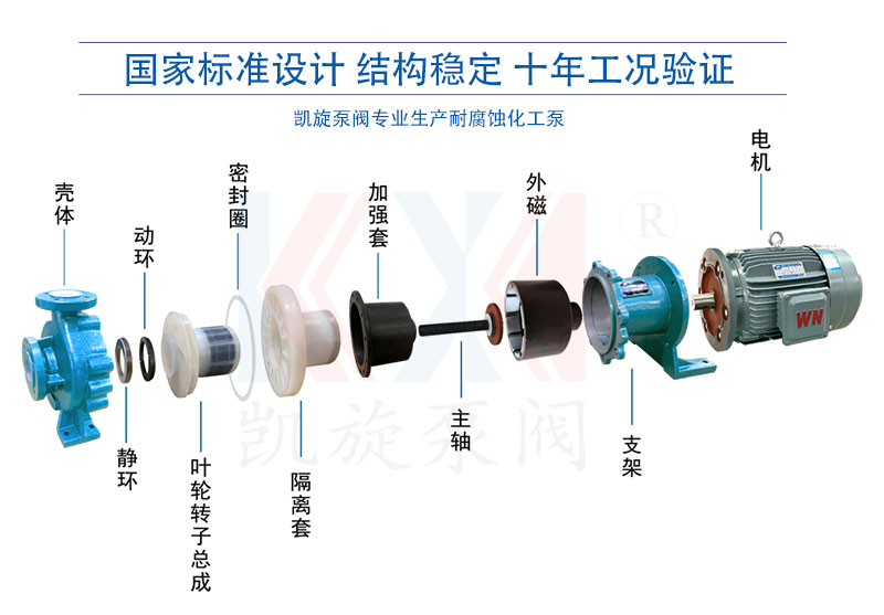 IMC型甲苯泵,過流部件使用氟塑料及合金復(fù)合材料制造,是應(yīng)用磁力學(xué)原理,利用內(nèi)外永磁體傳動,實現(xiàn)扭矩?zé)o接觸傳遞,當(dāng)電動機帶動外轉(zhuǎn)子總成旋轉(zhuǎn)時,通過磁場的作用磁力線穿過隔離套帶動內(nèi)轉(zhuǎn)子總成和葉輪同步旋轉(zhuǎn),外轉(zhuǎn)子旋轉(zhuǎn)時隔離套靜止,隔離套將介質(zhì)完全密封,從而達到無泄漏輸送介質(zhì)的目的。解決了機械傳動泵的軸封跑、冒、滴現(xiàn)象。非常適合輸送任意濃度的酸、堿、有機溶劑、易燃易爆和貴重液體等。