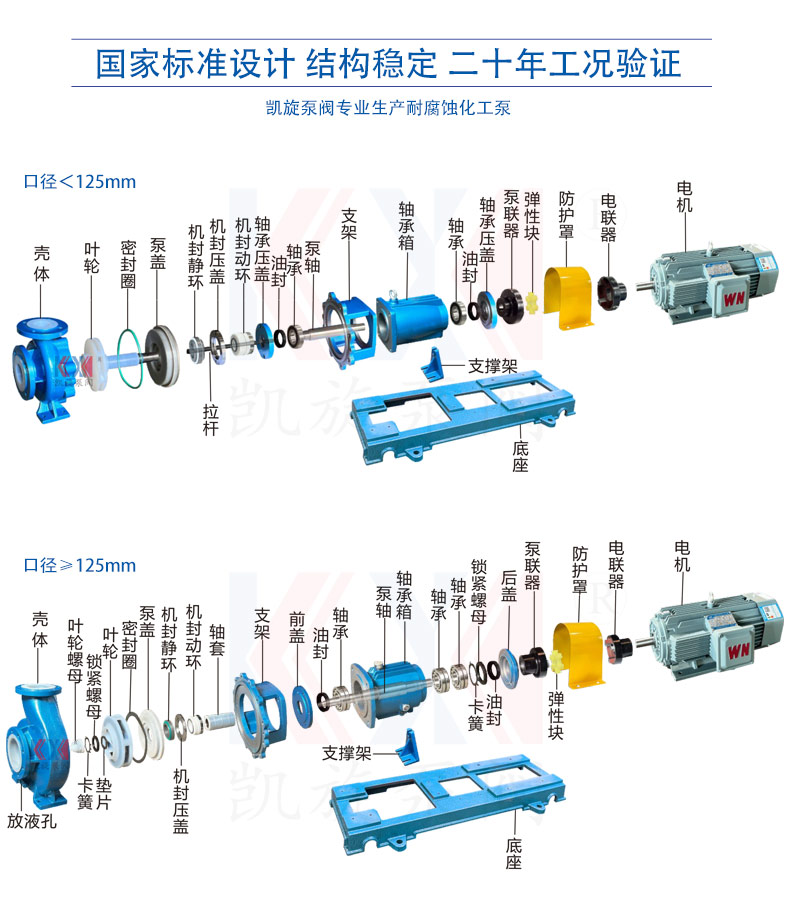 IHF型氟塑料離心泵,為單級單吸懸臂式離心泵。過流部件使用氟塑料、氟合金等材料制造。氟合金為聚四氟乙烯和聚全氟乙丙烯粉料按照配比充分混合,通過高溫?zé)Y(jié)讓粉料熔合后,再模壓成型。氟合金材料同時具有聚全氟乙丙烯的韌性和聚四氟乙烯的耐溫性。IHF系列離心泵耐腐蝕效果優(yōu)秀、通用性強,適用于較復(fù)雜的工況。